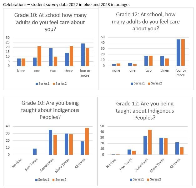 Initiatives such as the Middle Years FLEX plan and Integrated Indigenous Learning classes underscore our commitment to fostering student efficacy and cultural inclusivity. Our Middle Years program has developed a FLEX plan that supports students in building their learning profile. We continue to develop an Integrated Indigenous Learning classes for both junior and senior grades. The student classes were hosted by OKIB once a week for learning on the land. Work with elders and traditional knowledge were emphasized while student developed their academic skills. Improved attendance and achievement were demonstrated through the classes.