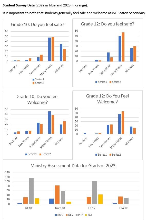 WL Seaton Secondary prides itself in the diversity of programs offered. In the 2023/2024 year…. Fine Arts Department: Music (115 student courses taken), Art (317 student courses taken), Choir (54 student courses taken), and Theatre (286 student courses taken). Applied Skills classes: Woodwork (266 student courses taken), Metalwork (195 student courses taken), Power mechanics or auto mechanics (58 student courses taken), Textiles (237 student courses taken), Foods (566 student courses taken – all grade 8 and 9 students are signed up for these). Science and Math had 264 student courses taken at the grade 12 level. 82% of our 2023 graduates were proficient of extending on the Ministry Literacy 12 Assessment and 0% were Emerging We have athletic teams in every district league and we have regular representation in the provincials. 38% of our 2023 graduating students graduated with a dual dogwood in English and French Immersion.